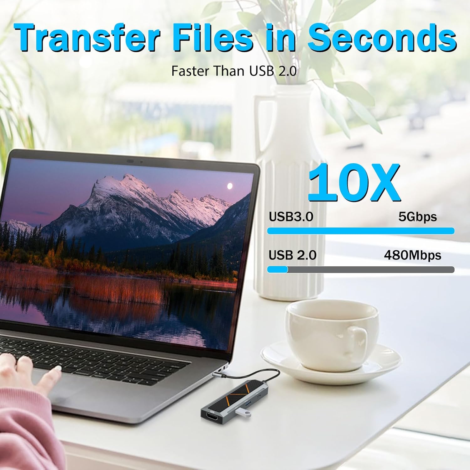 Vysokorychlostní přenos dat zajišťuje efektivní sdílení souborů a komunikaci se zařízením, díky čemuž je rozbočovač USB-C 4 v 1 s 4K 60Hz HDMI Splitter vhodný pro kancelářské i kreativní pracovní prostředí.