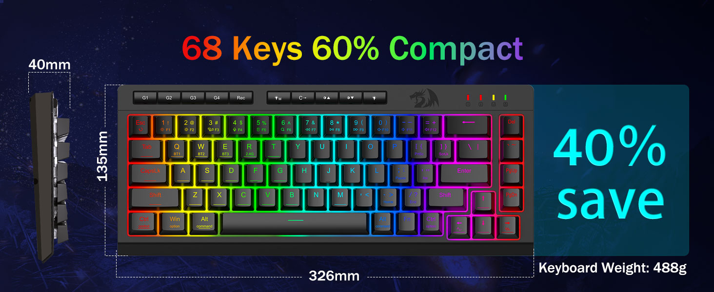Pohlcující RGB osvětlení a přizpůsobitelné prostředí -Uvolněte 16,8 milionů barev RGB s 8 přednastavenými režimy (Rainbow Wave, Reactive Typing) + 6 DIY profilů. Upravte jas od živé záře až po tajný režim – ideální pro noční hraní nebo kancelářské použití.