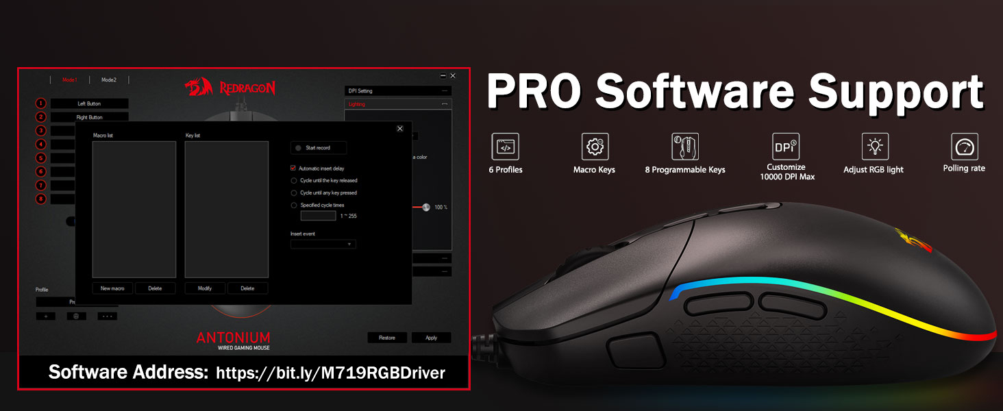 Softwarová podpora -Rozšiřte své možnosti pomocí dostupného softwaru a vytvořte si vlastní nové režimy a efekty. Makra s různými klávesami nebo zkratkami pro efektivnější práci a hraní her. Odkaz na software: bit.ly/K524WiredDriver