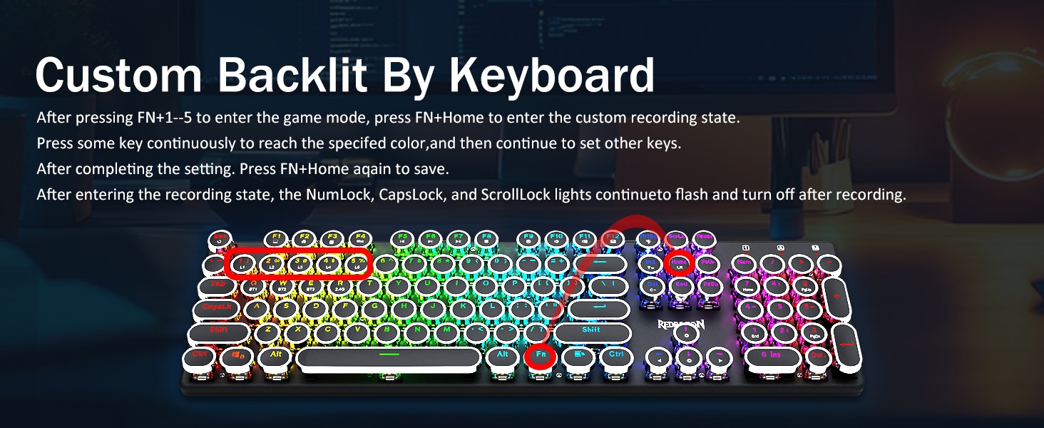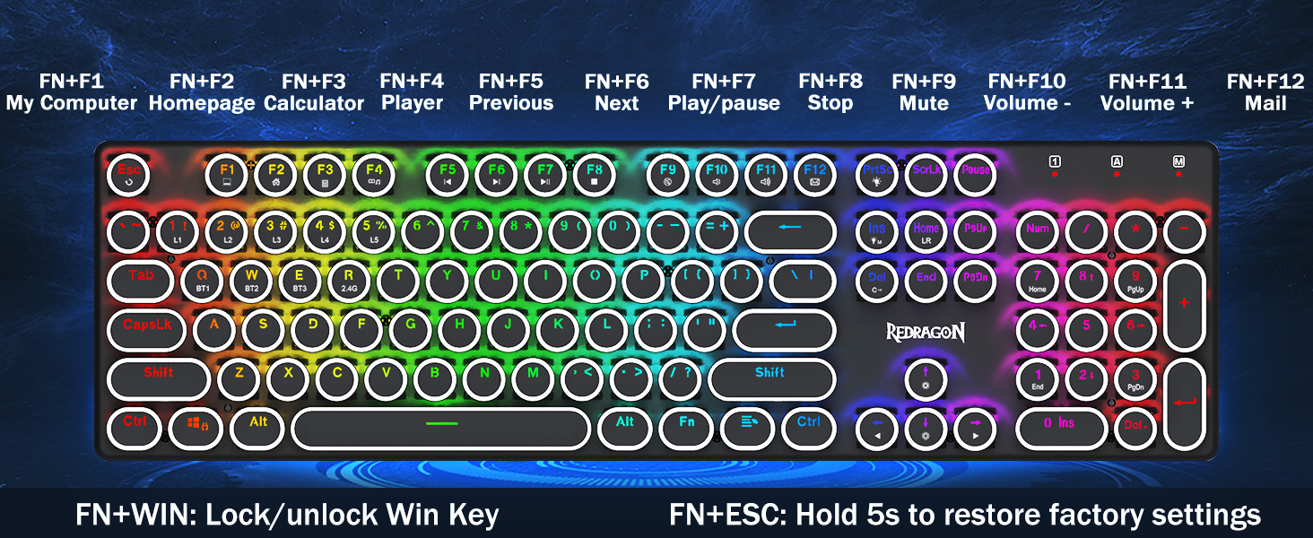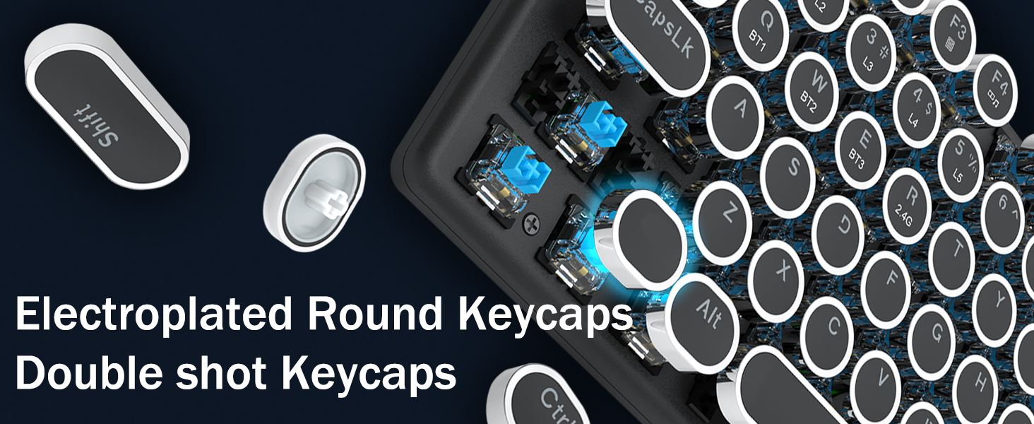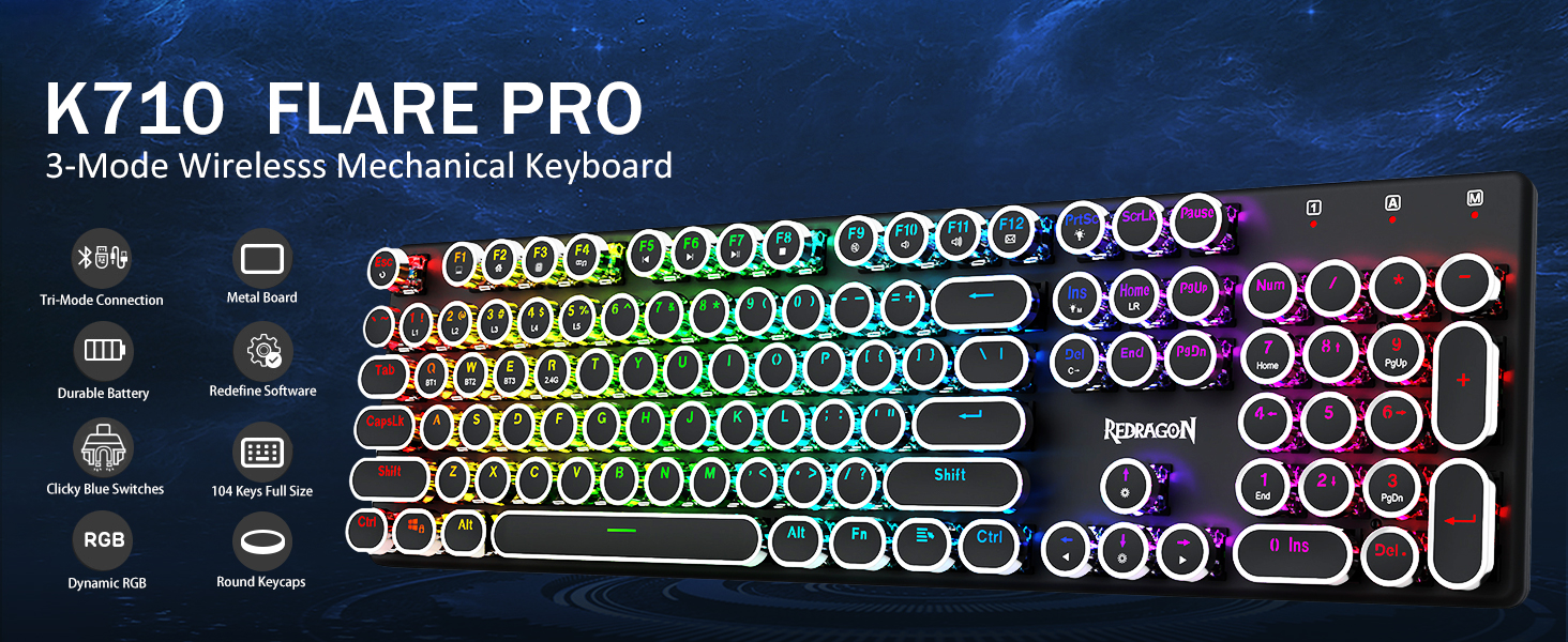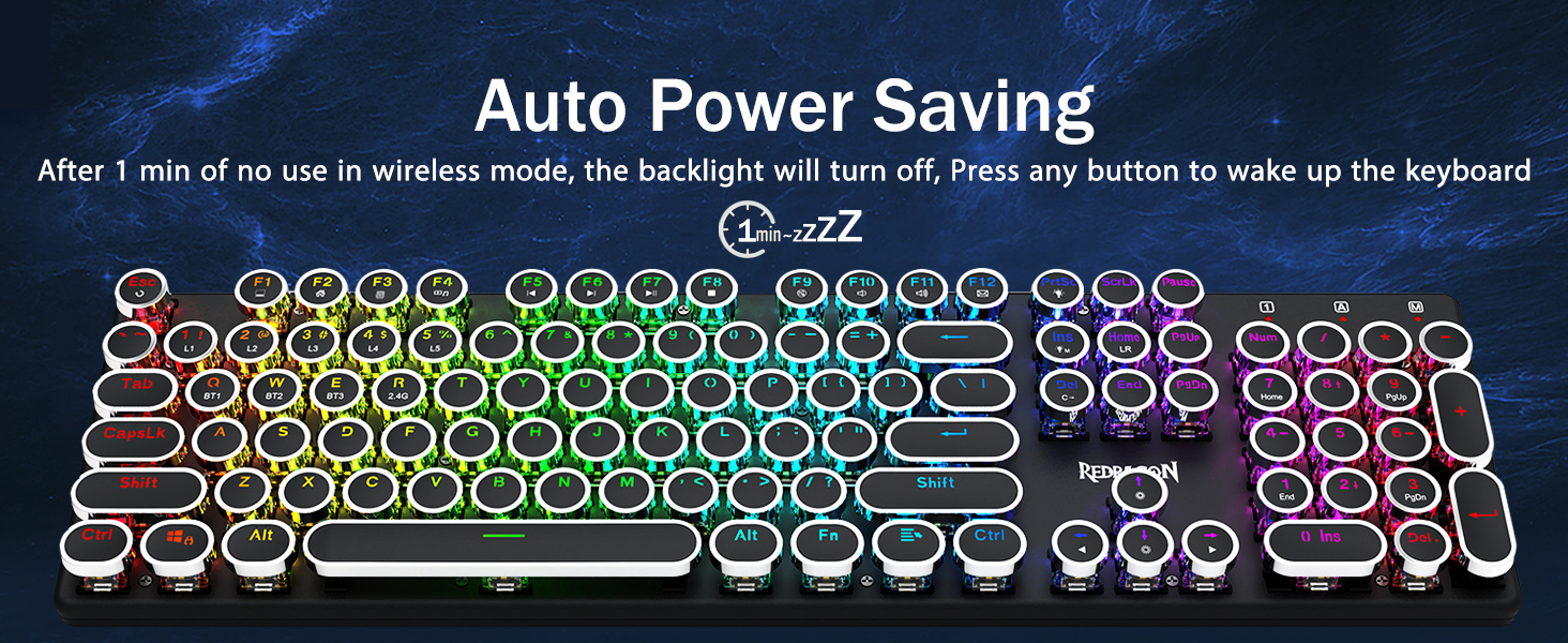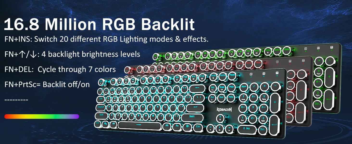 𝗥𝗲𝘁𝗿𝗼 𝗧𝘆𝗽𝗲𝘄𝗿𝗶𝘁𝗲𝗿 𝗦𝘁𝘆𝗹𝗲 𝘄𝗶𝘁𝗶𝘁𝗶𝘁𝗶 𝗠𝗲𝗰𝗵𝗮𝗻𝗶𝗰𝗮𝗹 𝗞𝗲𝘆𝘀 -Modré spínače Redragon Mechanical nabízejí střední odolnost, slyšitelný cvakavý zvuk a hmatovou zpětnou vazbu, poskytují citlivé a přesné herní prostředí a výkon. Vintage steampunková klávesnice s kulatými klávesami vypadá jako klasický psací stroj, přináší vám pohodlný pocit při psaní a stabilní klikání.