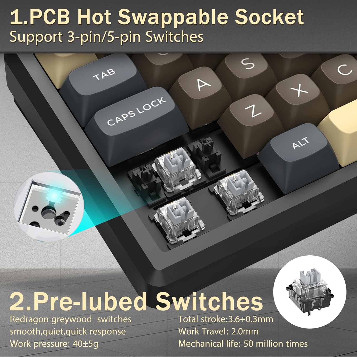 Odpověď: 60% rozložení snižuje velikost klávesnice odstraněním nepodstatných kláves. To poskytuje více místa na stole a zlepšuje přenositelnost a zároveň umožňuje přístup ke všem funkcím pomocí kombinací kláves.