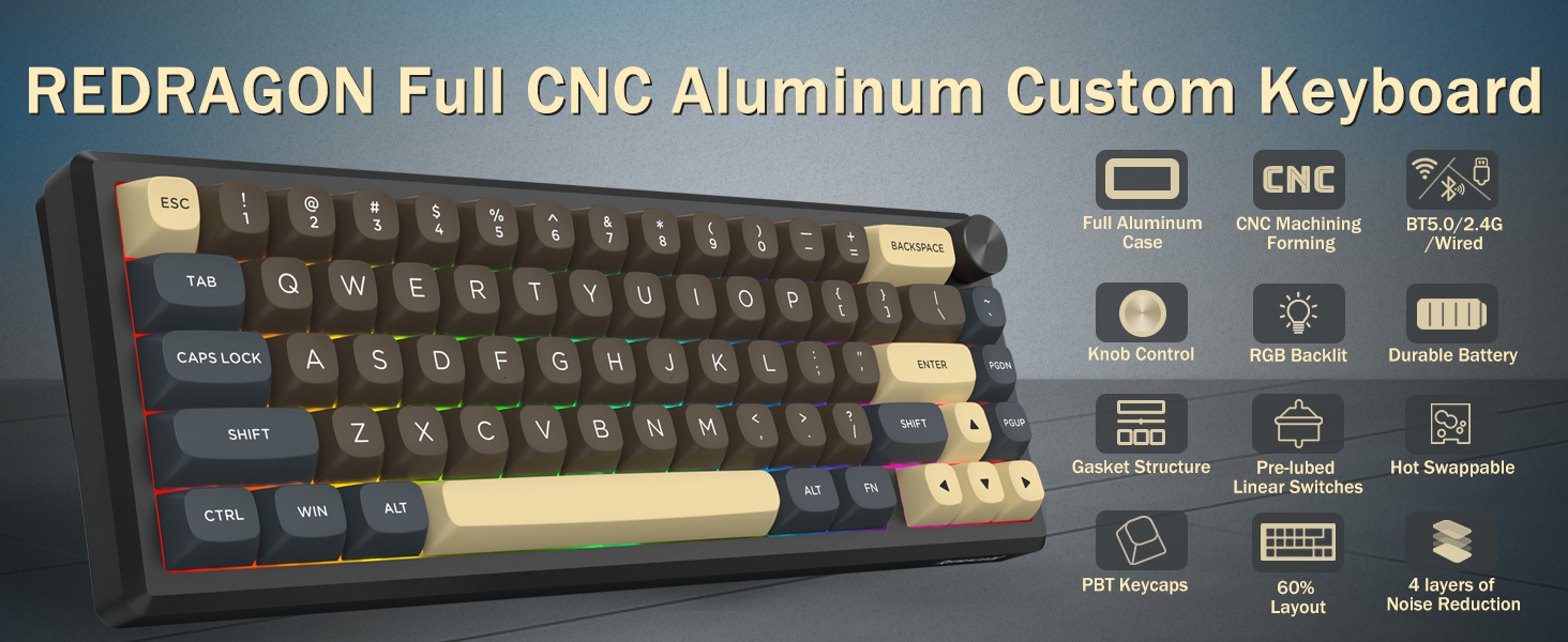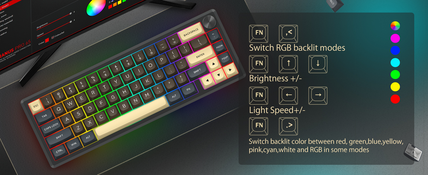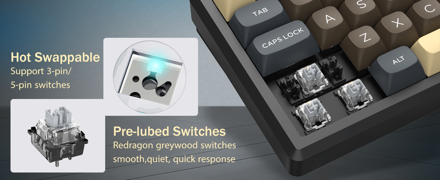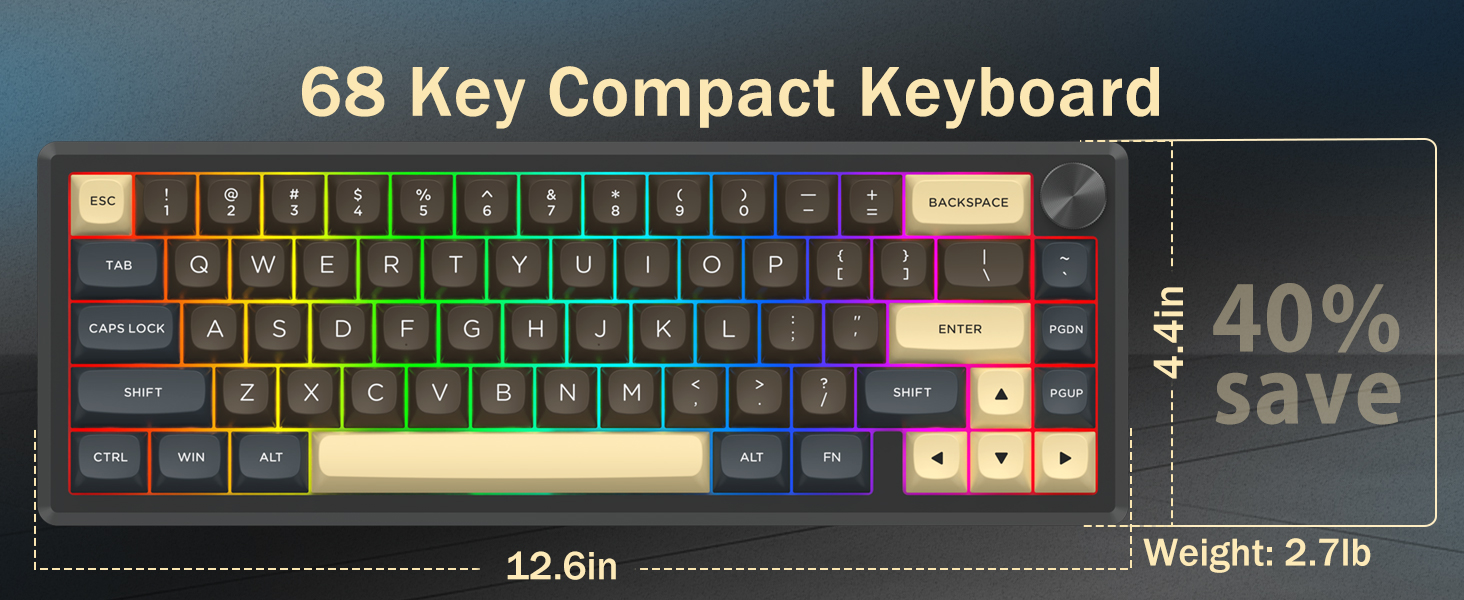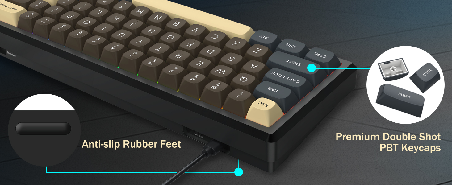 Se svým 60% rozložením tato klávesnice odstraňuje nepodstatné klávesy a zároveň zachovává základní funkce prostřednictvím kombinací kláves. Tento design pomáhá snížit nepořádek na stole a poskytuje více prostoru pro pohyb myši, takže je vhodný pro herní i produktivní prostředí.