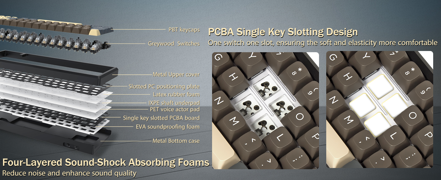 Krytky kláves jsou navrženy pro odolnost a konzistentní texturu, což pomáhá udržovat pohodlné psaní v průběhu času. Rám klávesnice poskytuje stabilitu během používání, snižuje pohyb během psaní nebo hraní her.