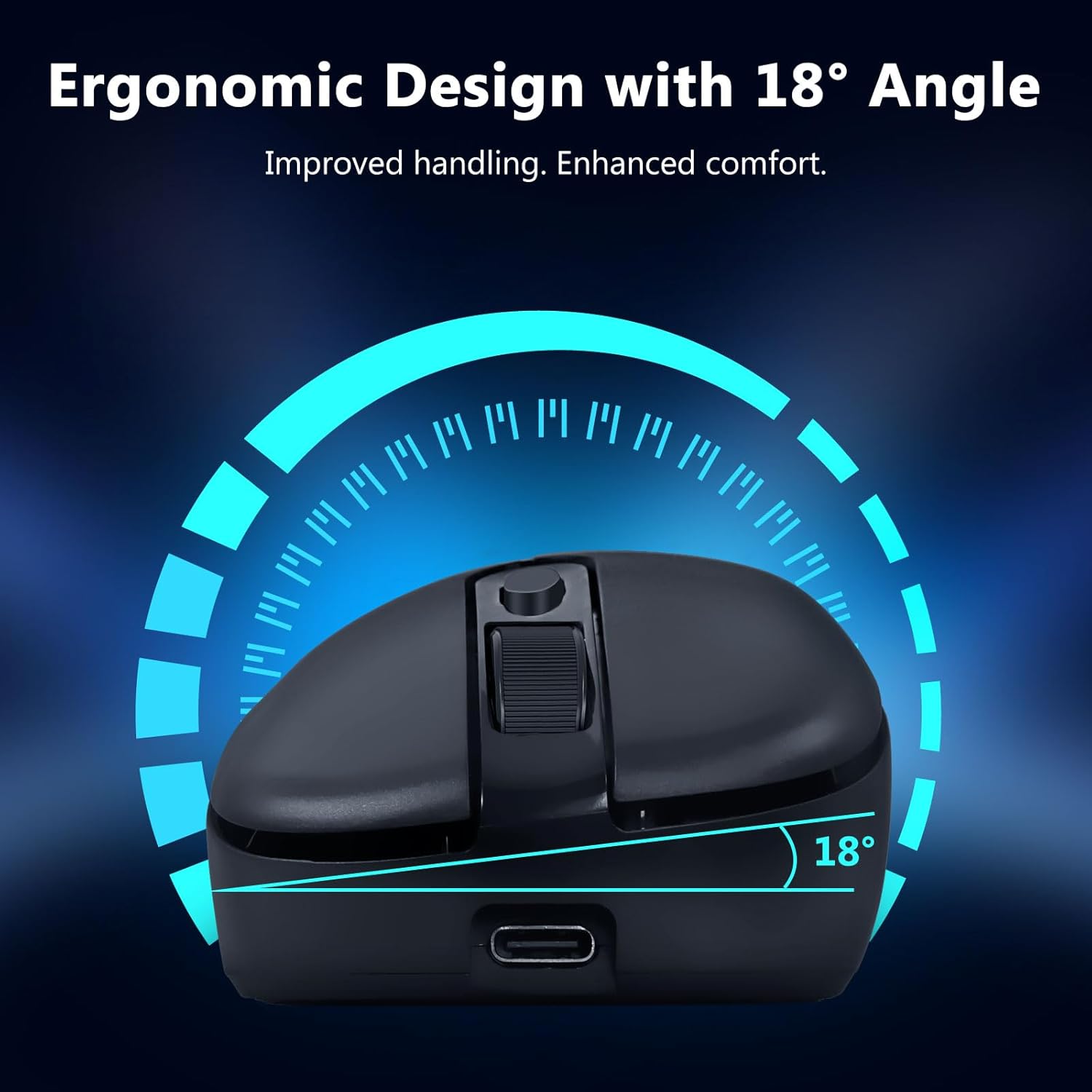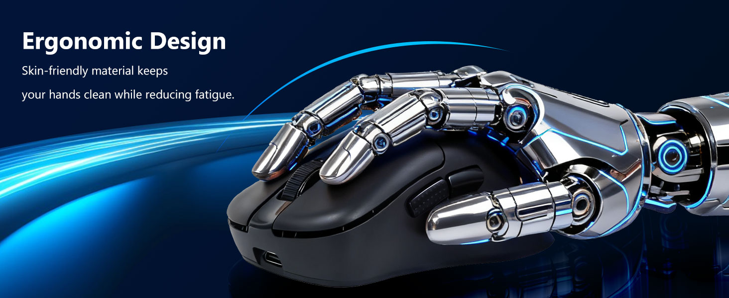 Myš je tvarována tak, aby podporovala přirozené umístění ruky a přizpůsobila se různým stylům úchopu. To pomáhá snížit únavu při dlouhodobém používání.