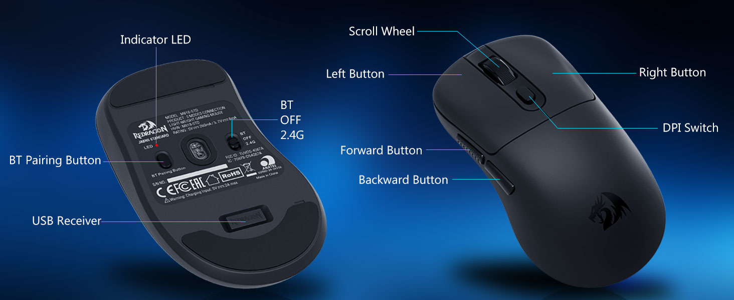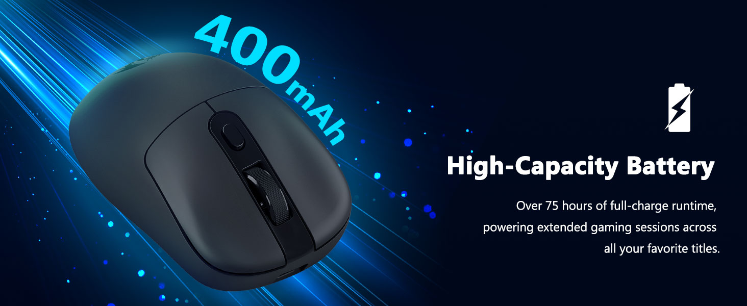 Vestavěná dobíjecí baterie poskytuje delší dobu používání. Uživatelé se mohou během nabíjení přepnout do kabelového režimu a zajistit tak nepřetržitý provoz.