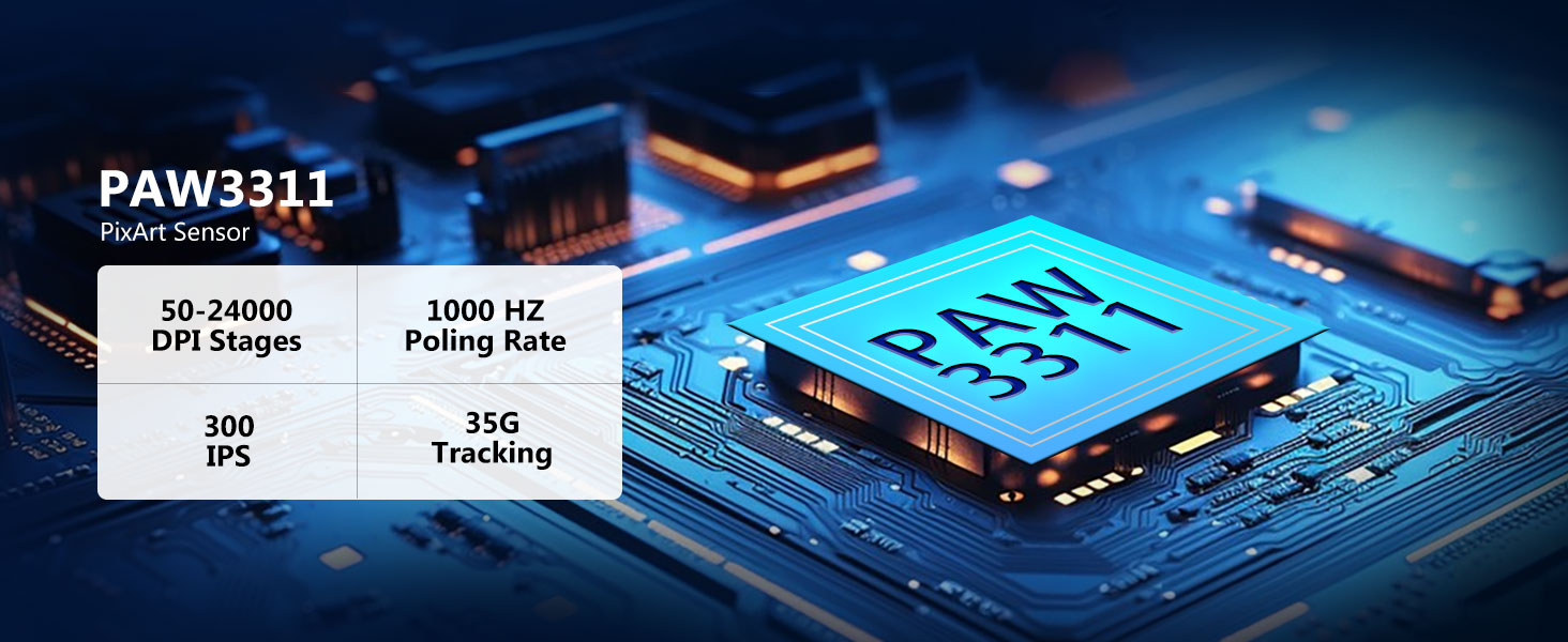 Myš je vybavena vysoce výkonným optickým senzorem schopným dosáhnout až 24 000 DPI. To umožňuje uživatelům nastavit úrovně citlivosti pro různé úkoly, od přesného ovládání kurzoru po rychlou navigaci na obrazovce.