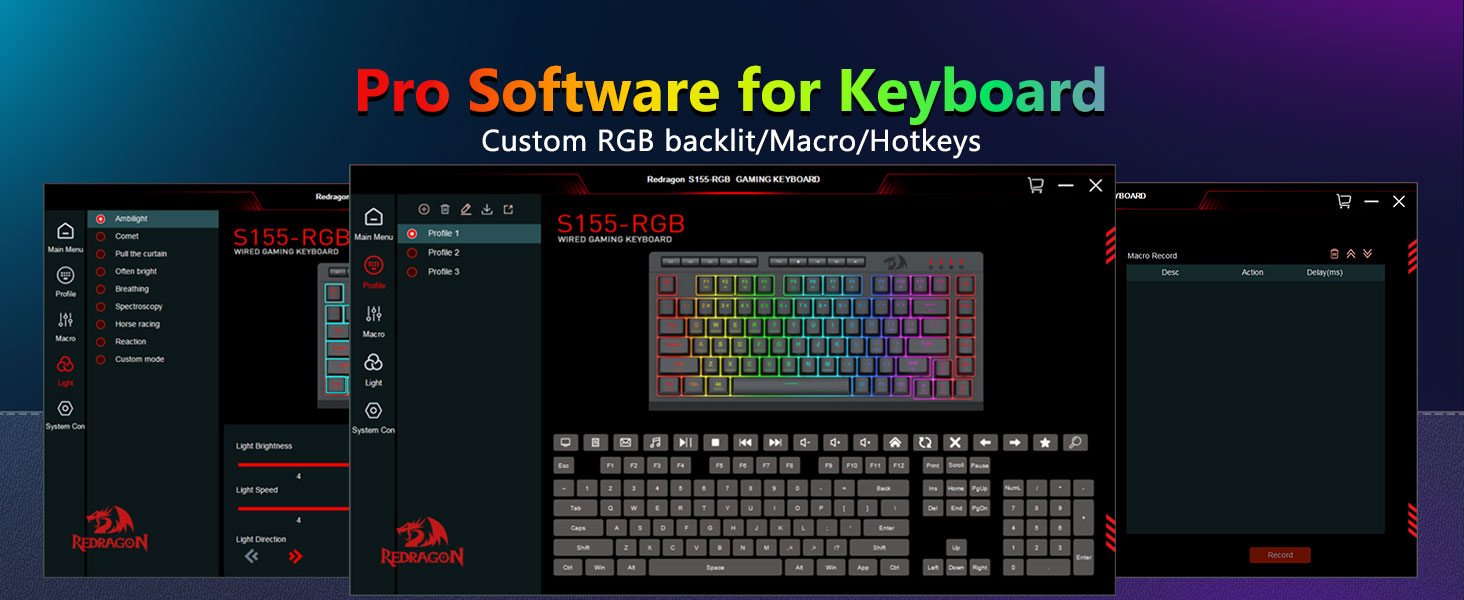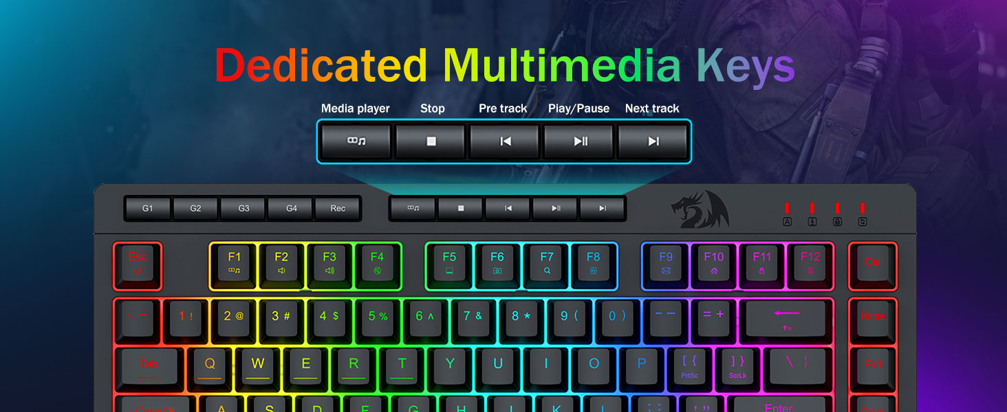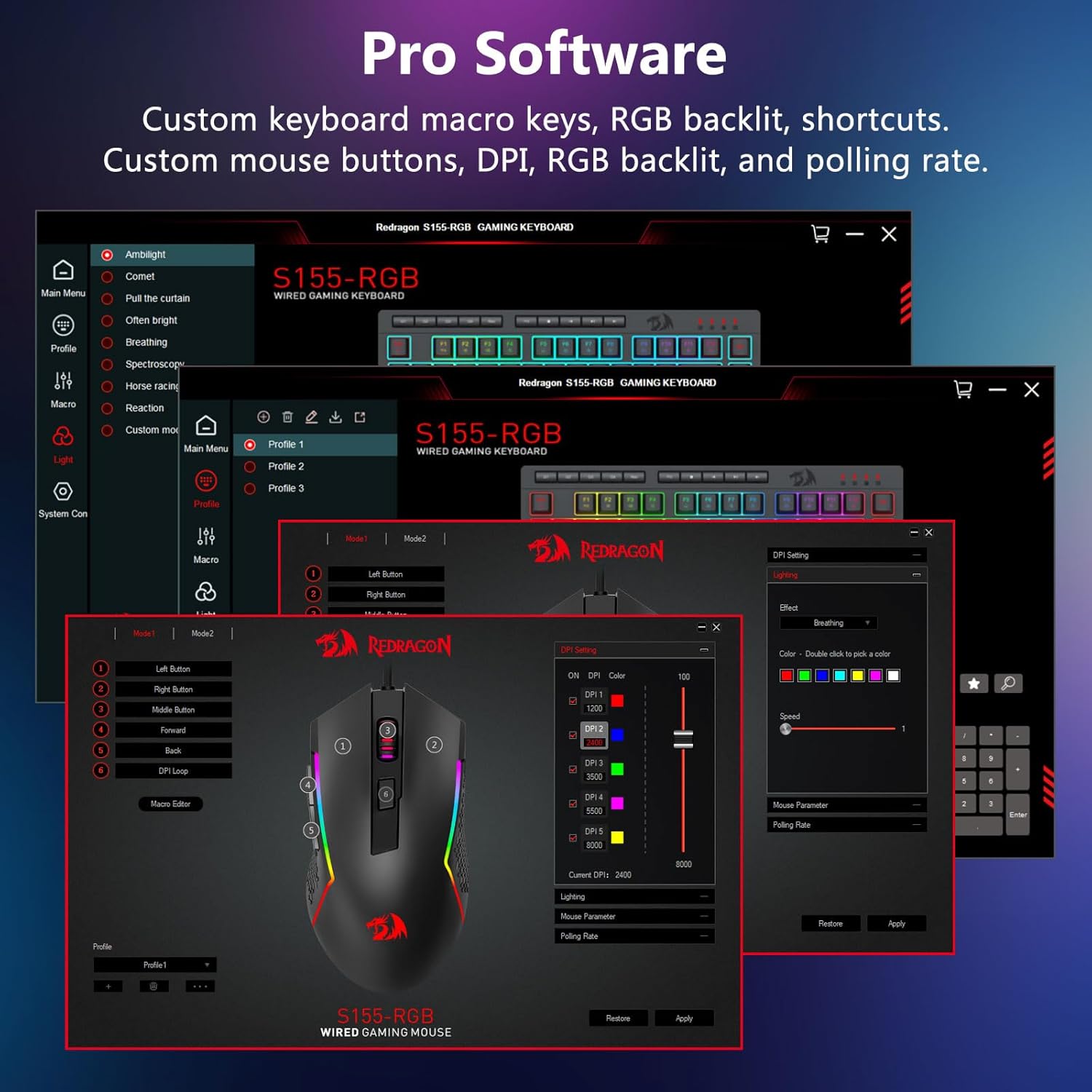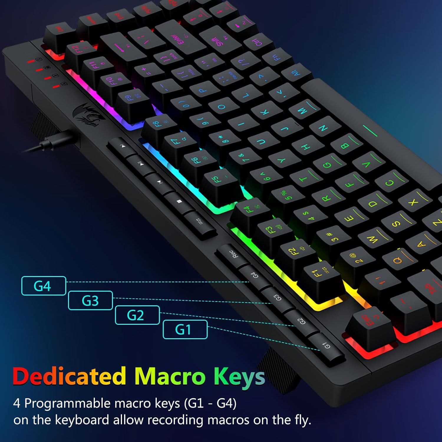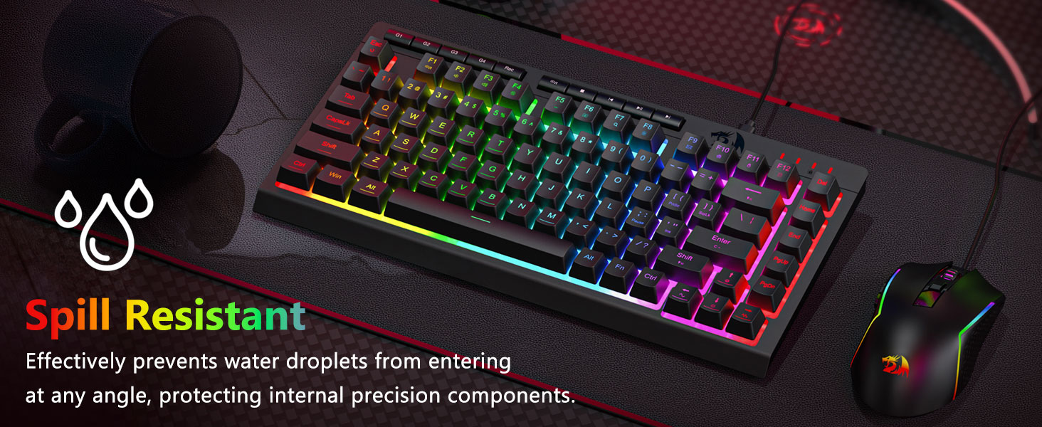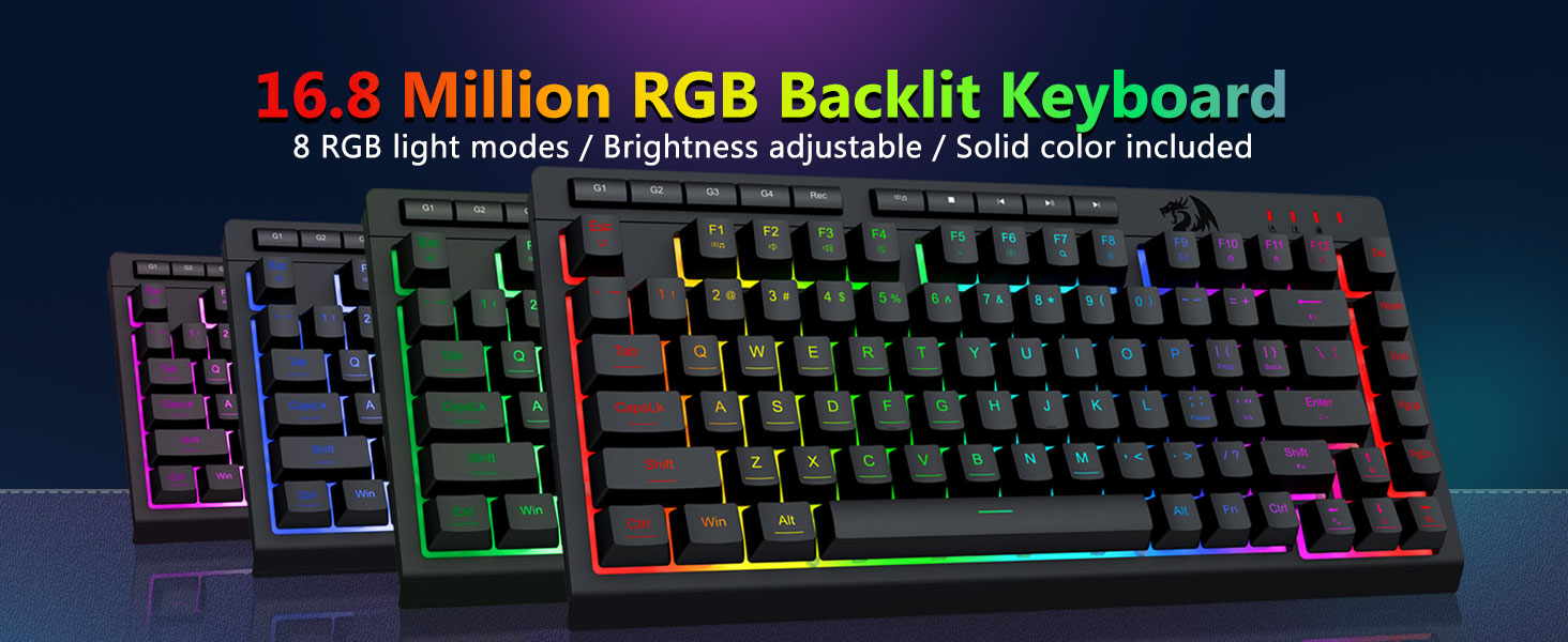 【RGB herní klávesnice a myš】Herní klávesnice má na výběr 8 režimů podsvícení RGB a herní myš má 8 světelných efektů, mezi kterými lze přepínat, a klávesnici lze nastavit na 4 úrovně rychlosti a jasu, aby vyhovovaly vašim preferencím. Krytky kláves nabízejí jasné jednotné podsvícení. Ať už je sada jediné světlo, měnící se světelné efekty nebo žádné světlo, herní klávesnice a myš Redragon splní vaše potřeby!