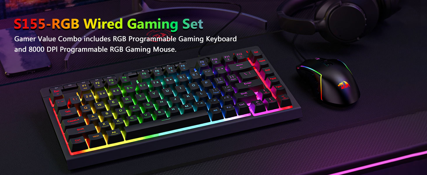 Hot Tags: Černá kombinace kabelové herní klávesnice a myši S155 RGB s podsvícením, Čína, výrobce, dodavatel, továrna